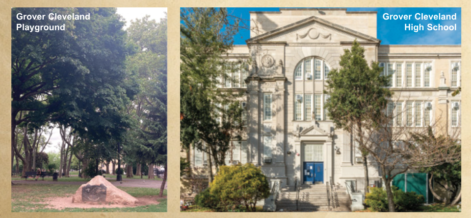 Locally, we have three public amenities named after Grover Cleveland: a high school and its athletic field, and a playground. The high school opened in 1931 to much fanfare. The naming of the playground was not without controversy, however. As per NYC Parks, when it opened in 1928, it was called Anawanda Park, a name taken from a small political organization of Tammany Hall-style politics that proponents called the “Anawanda Democratic Club.” In December 1939, the park’s name was changed to Grover Cleveland Playground amidst much controversy. The anti-reformists of the Anawanda Democratic Club protested the renaming of “their” park after a reformist president and their nearby rivals, the Grover Cleveland Democratic Club.