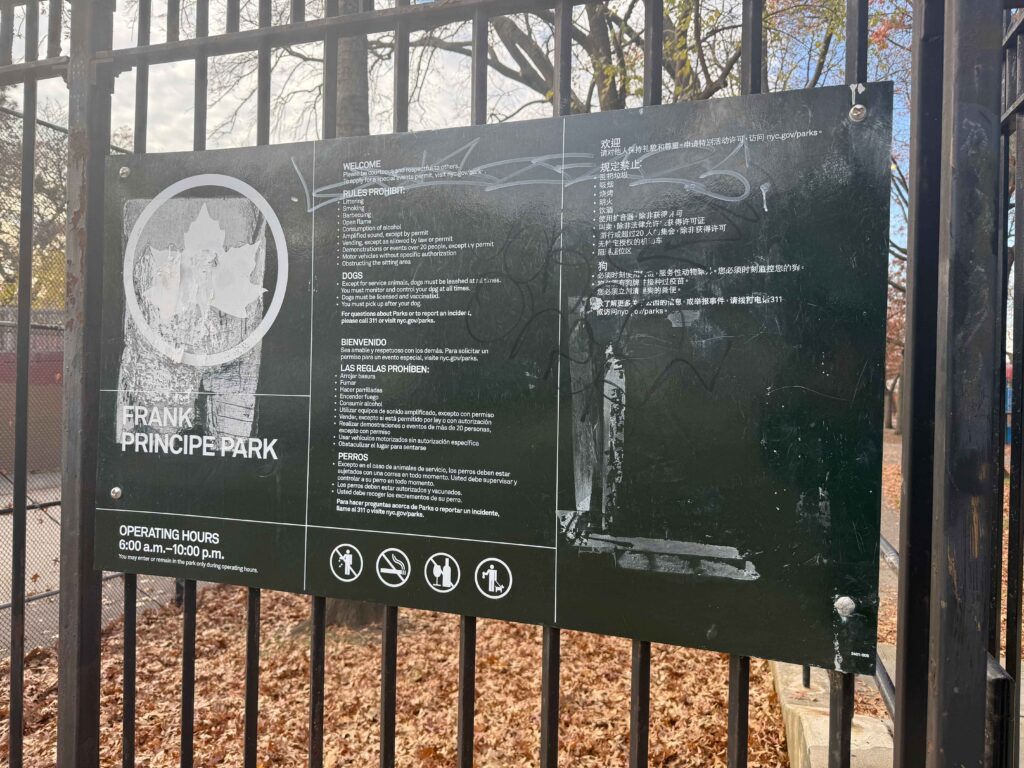 Park signs are placed on fences so parkgoers understand the rules, which is why it’s infuriating to see them vandalized. Placing posters and stickers, and scribbling graffiti on park signs, leaves them looking worse for wear. We want our parks to look beautiful, and being welcomed to a park by signs that look like this is not a good way to start a visit.
