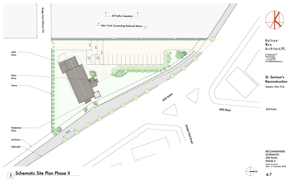 While that was taking place, All Faiths Cemetery claimed they wanted to have the church reconstructed on their property for community purposes. An architect hired by Landmarks Conservancy created a plan to phase the project so we wouldn’t need all the funding at once. JPCA engaged in extensive efforts to obtain funding for phase 1 and successfully secured governmental pledges of approximately $2M payable to All Faiths. Unfortunately, the rebuild could not begin at the cemetery due to demands regarding rent, use, and ownership of the reconstructed church. After years of failed negotiations, the City ultimately reallocated the money to other pending projects.