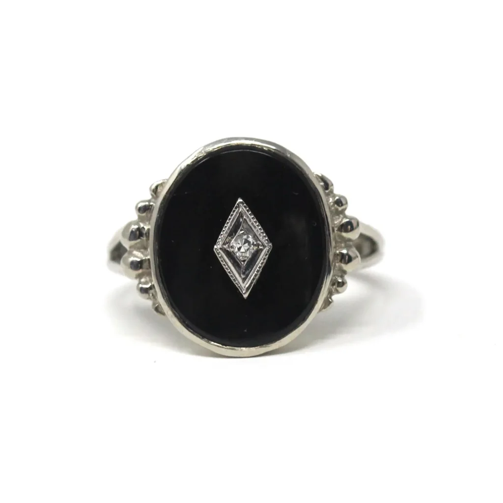 Bubbe, even in her financial dire straits said, “Katie, go to all the Antique stores and find a ring like Frieda’s.” Katie shopped and shopped, and I was soon the recipient of a Vintage black onyx ring in a white gold setting with a small diamond in the center of the onyx.