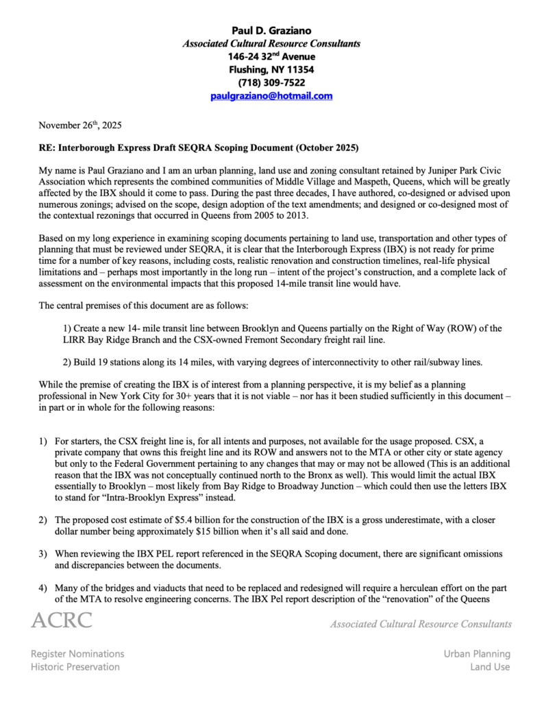 Thank you to Paul Graziano for submitting comments on the IBX to the MTA. He brought up a lot that hasn't been discussed yet. ... See MoreSee Less