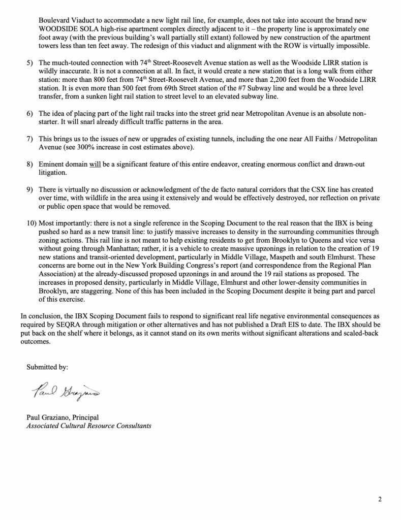 Thank you to Paul Graziano for submitting comments on the IBX to the MTA. He brought up a lot that hasnt been discussed yet.Image attachment